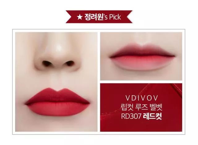 RD307,正统深红色,韩国官网说的!不是正红,是深红!丝绒口红,感觉很棒!但这个牌子实在太小众了,本8还没找到试色图,就用官宣照来代替吧。