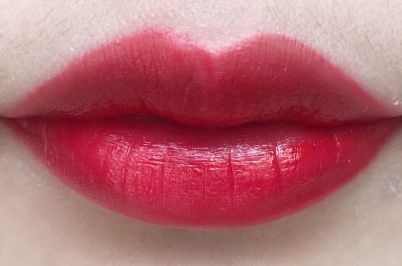 很好看的樱桃梅子色,奶油质地还算滋润,膏体很顺滑很显色。