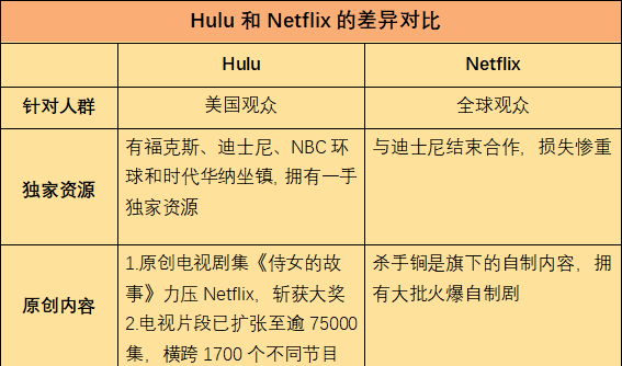 Hulu目前在内容上的投入还远远小于Netflix和亚马逊。其官方表示,2017年它们在这一板块投入了25亿美元,而亚马逊则花费了45亿美元,Netflix花费近 60亿美元。