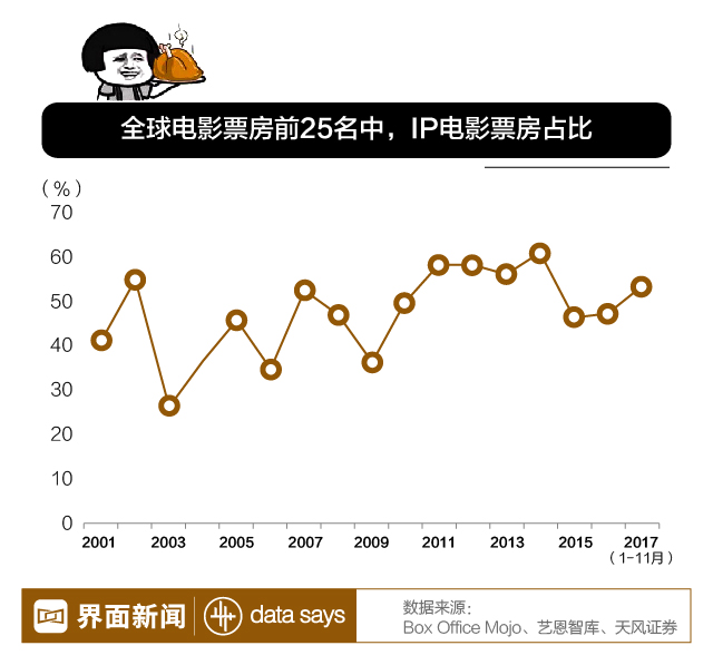 事实上,改编热门IP一直是全球影视界的通行做法。以电影为例,具有IP源头的电影票房通常占到整体的一半左右。对于电影公司来说,原作IP庞大的粉丝基础能为票房提供保证;对于原作者来说,IP的影视化能为自身带来更高的曝光度,实现商业价值。