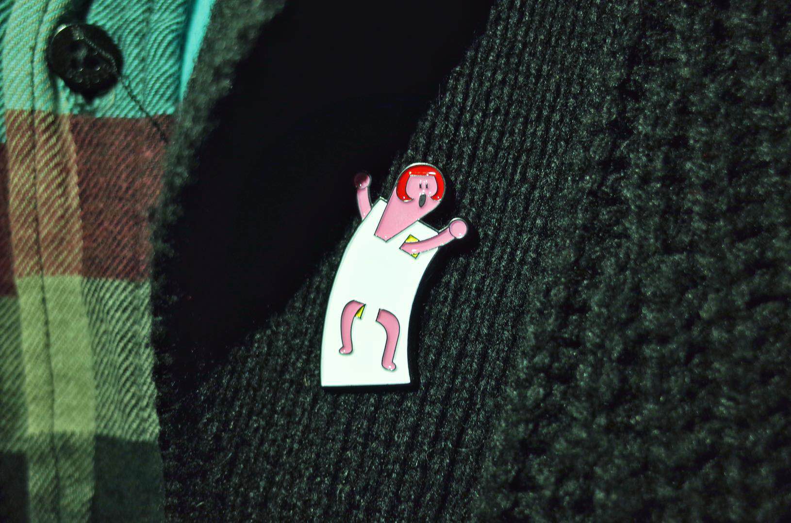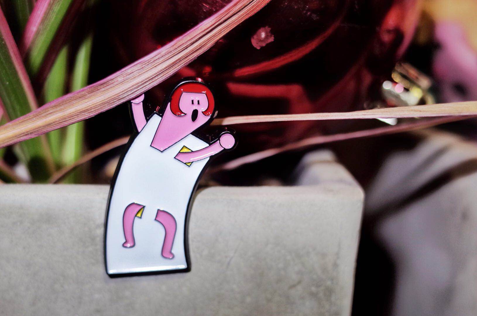 这枚胸针,由我们的艺术家好朋友毛病儿倾情定制,她是2018年歪楼第一趴“歪楼有毛病儿”的主角,一位可爱又魔性,痴迷画画,尤其是“裸体漫画”的女孩。