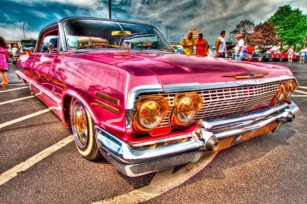 这不是你眼拙,而是美国人城会玩儿啊。一辆快要被淘汰的老爷车,经过他们的手改装后,变成了超大尺寸轮毂搭配艳丽车身色彩的美式嘻哈DUB风格车,并焕发出时尚个性的现代气息。他们管这种改装车叫Lowrider(趴地跳跳车),顾名思义就是像青蛙一样能趴地也能跳跃的车。