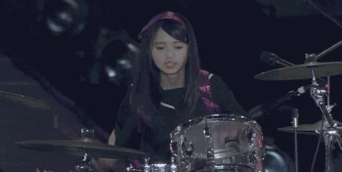 舞台上的她永远很自信,敲架子鼓的样子非常专注和可爱。
