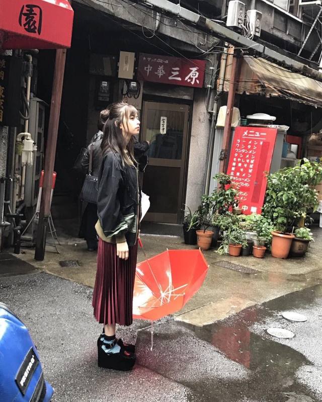 斋藤飞鸟也是一个爱美的女生,学院风look出镜率蛮高的,百褶裙+半腿袜的组合青春气息满满。
