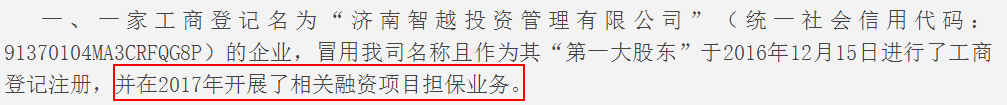 首先,他们用济南智越这家公司开展了相关融资项目的担保业务。
