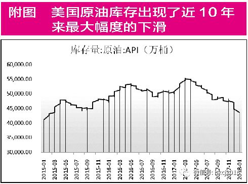 原油库存持续下降,少数乐观分析人士已将原油目标价上调至100美元。根据IEA和OPEC对2018年原油供需的预测,今年原油将处于紧平衡状态。而伴随着油价的上涨,各类金融资本的加入将增加原油的社会库存,造成供给紧张的格局。数据也显示,美国原油库存出现了近10年来最大幅度的下滑(如图所示),目前整体原油库存已回落至过去五年的均值水平。