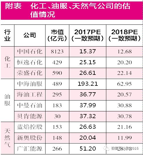 除此以外,美元指数、地缘政治以及金融投机等均有可能对原油价格造成冲击,以美元为例:美元指数自创下近几年高点103.82之后已回调将近1年时间,考虑到美国失业率已降至十六年来新低,理论上存在拐头向上继续施压美元指数的可能,继而带动一系列以美元计价的大宗商品价格的反弹。总的来看,油价仍有望保持上行态势,少数乐观分析人士已将2018年的目标油价上调至100美元。伴随着油价的上升,以化工、油服和天然气为代表的投资机会将显现。