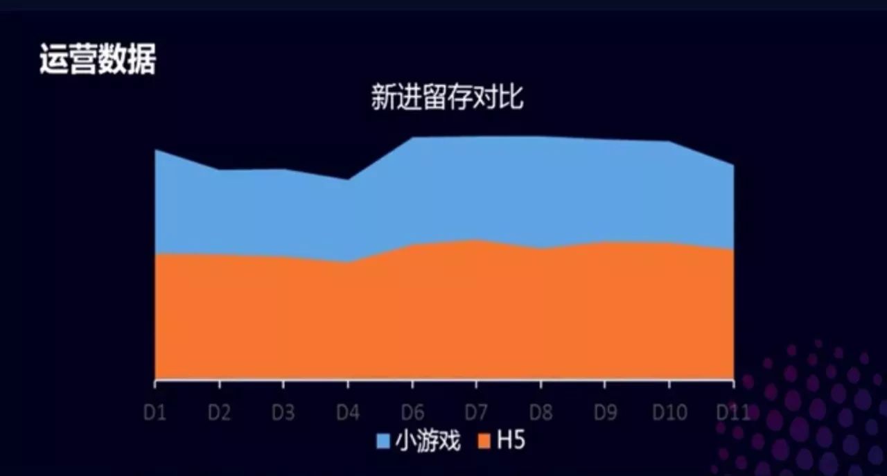 从项目表现来看,同样品质的 H5 游戏,做成小游戏,留存率有 10% 的提升。斗地主团队分享,小游戏留存率甚至比H5增长了一倍多。目前团队已经在把把H5用户导入小游戏。