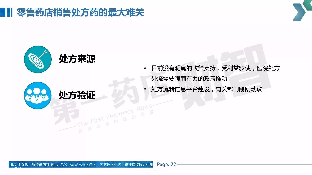 那么,院外处方药市场的现状究竟如何,接下来将出现哪些分化?从药企到药店要如何顺势而为?中康资讯药品零售发展研究中心分析总结了院外处方药市场的现状和驱动因素,并结合大量的数据资料对处方药外流发展趋势和当下的挑战、应对措施提出了一些预测和建议。
