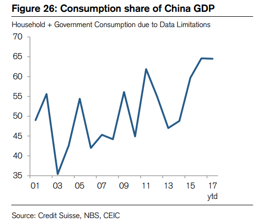 去年,中国工业生产增速基本稳定在6%,主要受到经济转型背景下重工业投资下滑的拖累。转型的趋势预计将在2018年继续,但瑞信预计,更健康的家庭部门和强劲的海外需求将会抵消转型对经济增速带来的压力。