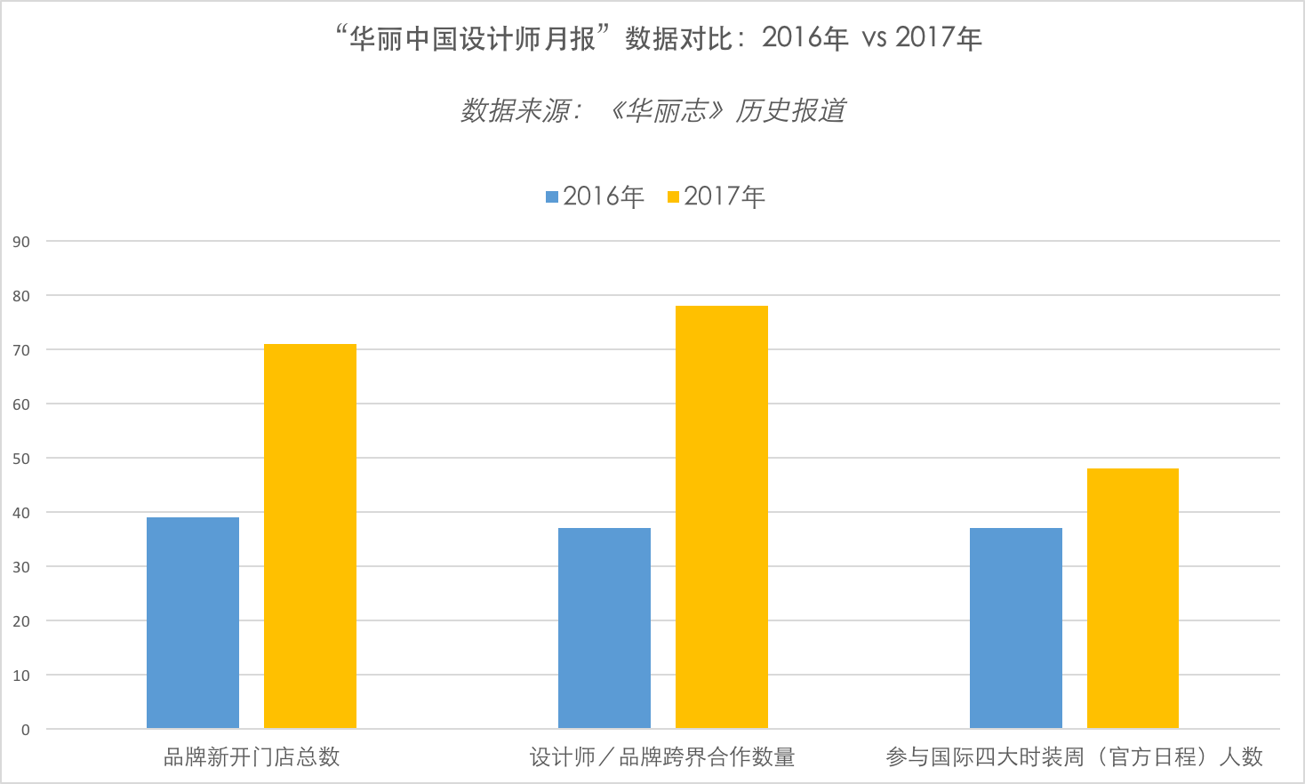 作为中国最权威专业的时尚商业媒体,《华丽志》一直高度关注与支持中国设计师和品牌的动态发展。这个群体天然具备设计原创性、独立DNA精神和引领时尚的属性,最有潜力成为中国新一代国际化时尚品牌的中坚力量。据“华丽中国设计师月报”过去一年的历史报道,设计师/品牌跨界合作数量近80个,相比2016年新增一倍,其中随着中国设计师及品牌的知名度和商业价值不断提升,越来越多的优质商业品牌主动向设计师靠拢并寻求合作。