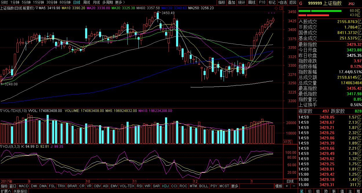 从日均线上看,上证指数不仅牢牢站上了250天长期均线,而且陆续突破5天、10天、 20天、 30天、 60天、 120天线等短中期均线,整个均线系统目前已经形成多头排列的局面。从技术面上讲,A股不仅仅实现了开门红,而且逐步回到了牛市的怀抱。
