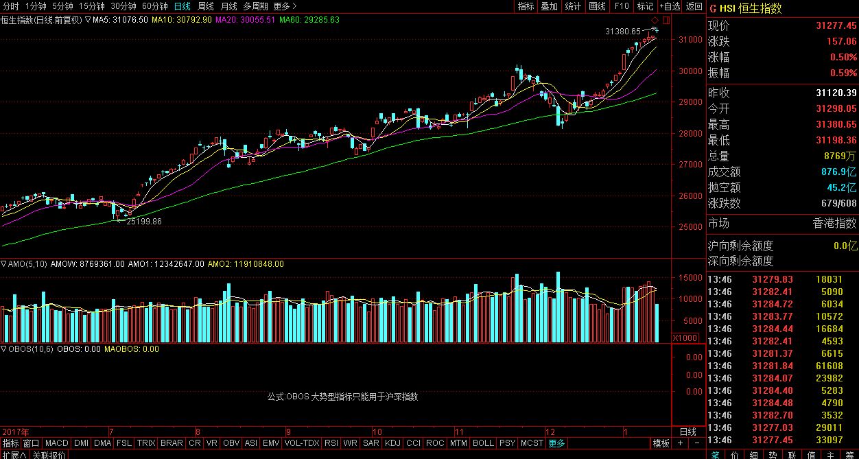 ▲恒生指数日线图。