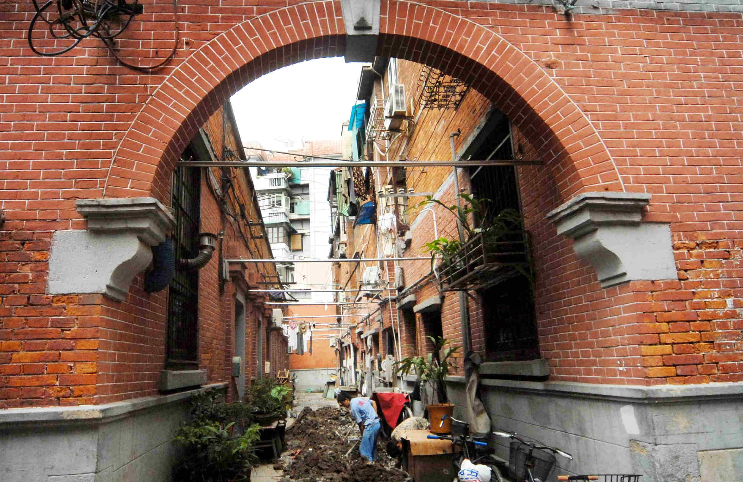 2008年8月31日,上海陕西南路建国西路口的著名老建筑——“步高里”居民区正在进行保护性地修缮施工。 “步高里”里的地下管道正在更换改造。