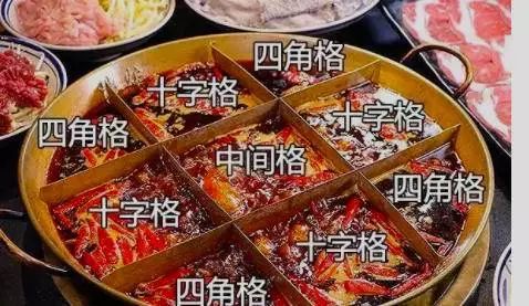 九宫格把火锅分为三个层次,不同的格子代表不同的温度和不同的牛油浓度。