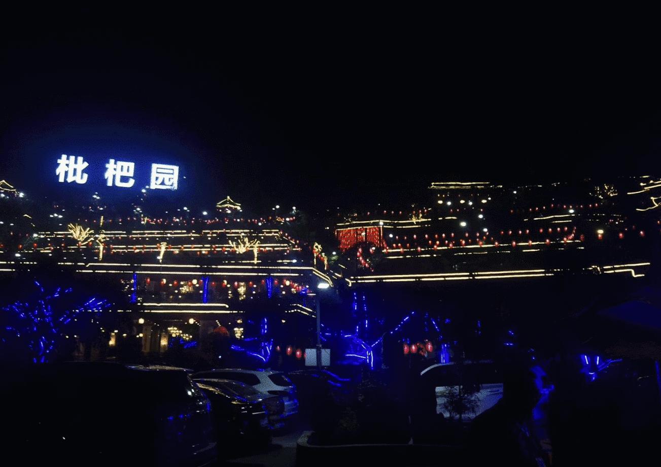 枇杷园火锅依山而立,顺坡而建,众多亭台楼阁依山就势、错落有致的镶嵌于满山的枇杷林中,蔚为壮观。