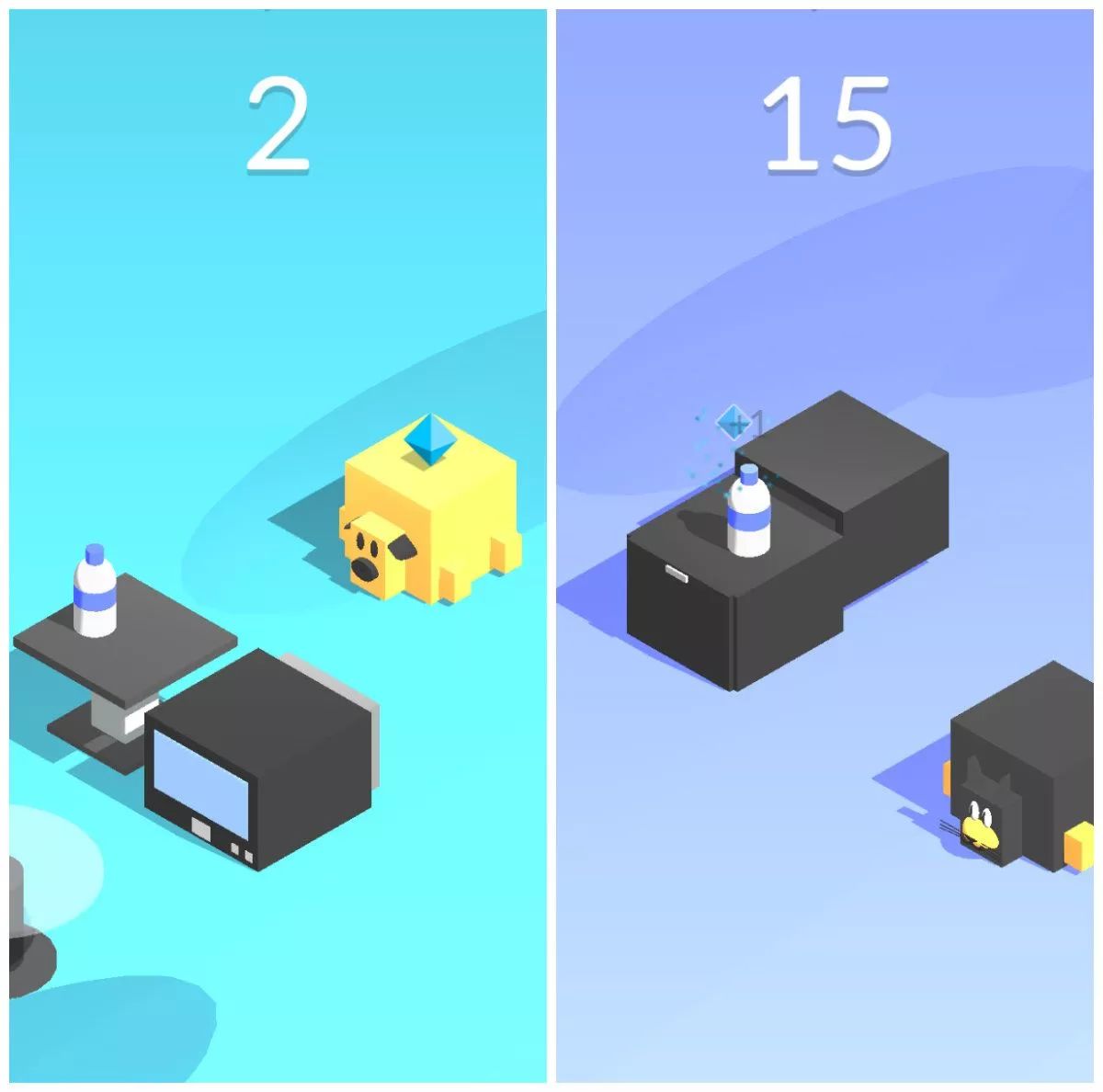 与“跳一跳 ”的区别在于Bottle Flip中翻转跳跃的不是小人儿而是瓶子,在游戏中,玩家按压手机屏幕就能将牛奶瓶从一个立方体翻转到另一立方体上。