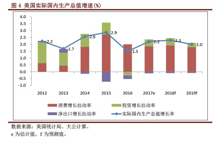 大公表示,“不触及病元的减税政策不会给美国经济带来实质性提振,预计2018年美国实际经济增速仅为2.3%,伴随加息引发的利率走高逐步抵消减税政策的短暂效应,2019年经济将迅速回落至2.1% ”。由此,大公总结,经济日渐式微以及财税收入的减少将不可避免地使政府财政收入持续承压。