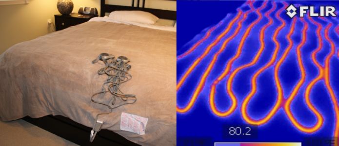 毕竟不少人对电热毯的安全问题还是战战兢兢,你自己看看上图红外下的电热线多可怕。