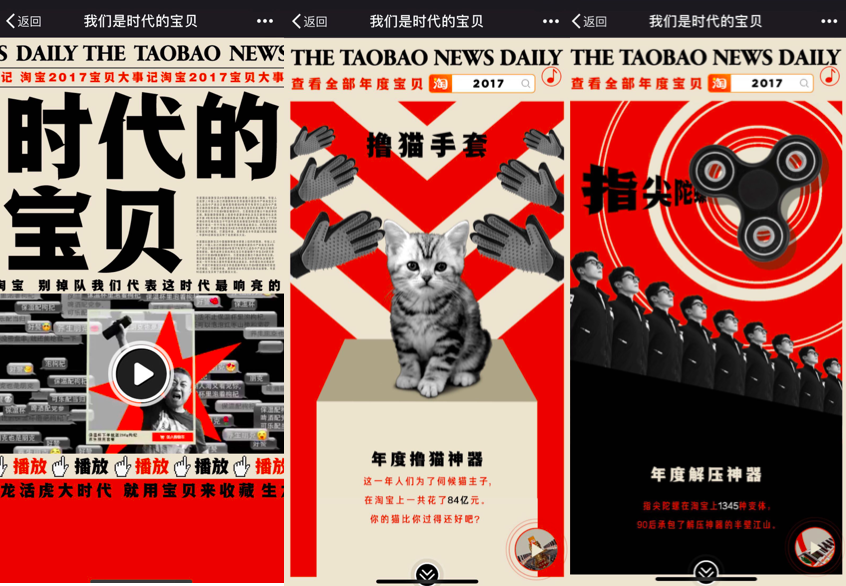 年度宝贝构成了淘宝眼中的 2017,在淘宝看来,它的意义已经超越了简单的「买买买、卖卖卖」范畴,而是有了更多社会学内涵:在淘宝,人们不只是在消费商品,也在展示生活的创意、人性和对世事的洞察。而这些,淘宝评选出《2017 时代宝贝》,用 40 项带有浓烈时代烙印的宝贝,表达淘宝的时代内涵,这其中:有「头发纤维粉」反应着 90 后脱发、秃头「新中年」的社会现象,有被称为年度精致孤独的宝贝「单人火锅」,映射着「空巢青年」真实生活状态,除此之外,还有年度最强凹造型宝贝、年度 90 后解压宝贝、年度各种神器,时代宝贝们裹挟着这一年发生的各类大事小事,既有社会热点,也有对消费者的心理洞察,让每一位消费者都能试图找到自己的映射。