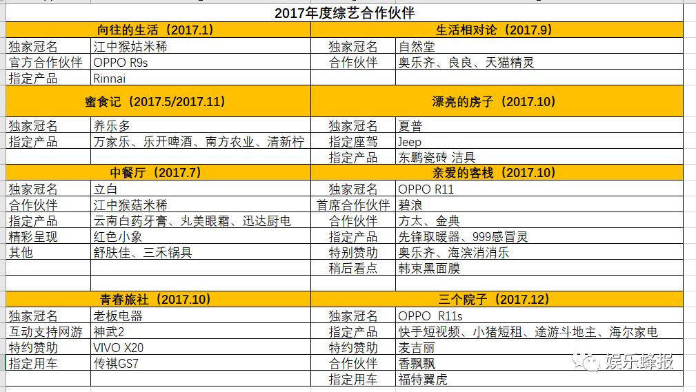 这一年综艺娱乐营销也玩出了新花样,OPPO、vivo、农夫山泉水、舒肤佳等品牌依靠综艺的花样植入,品牌知名度大幅提升,综艺的营销环境正面临大改动。接下来蜂蜂就带大家来复盘一下2017年的综艺市场。此篇先从宏观环境来看一看,品牌与综艺合作的大背景趋势变动。