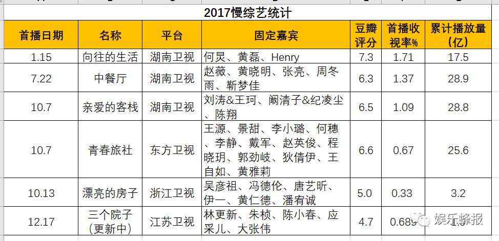 这也是2017年原创综艺的新气象。除了央视领跑的文化综艺,卫视也兴起了慢综艺热潮,同类型节目一时扎堆出现。如果说2015年是国产综艺元年,那2017年又该如何形容呢。