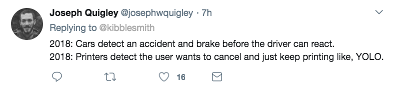 2018年:打印机即使在你无数次按下取消键之后还是继续打,简直就是,棒棒啊。