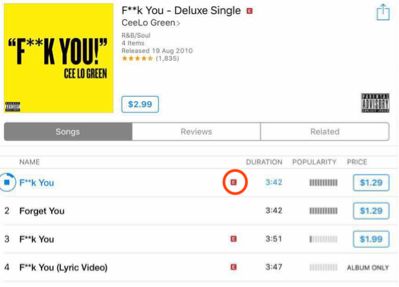 这个做法在国外比较常见,海外唱片公司在发行脏标作品时,会同时发布原版与纯净版。例如,美国歌手Cee-lo Green在2010发行《F**k You》单曲时,还推出了一首旋律完全相同,仅歌词中的“f**k”改为了“forget”的《Forget You》。