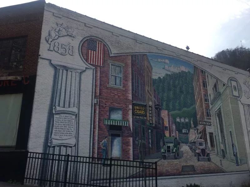 沿街路灯杆上,一些建筑墙上,披挂着各色圣诞装饰,显示市政管理的存在。城西尽头处一栋楼房,整墙绘着韦尔奇曾经繁华整洁的街景,上写:“韦尔奇市,建于1894年……是全美举行老兵节庆祝游行最早、最悠久的地方。”同事脱口而出,这是甲午战争那一年。