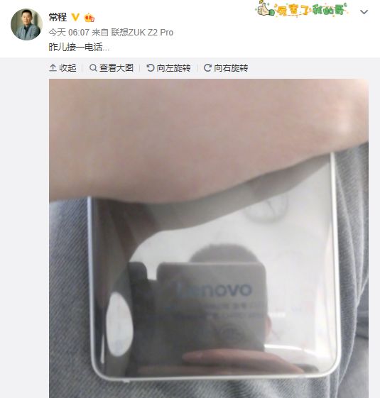 昨日,ZUK掌柜常程照常与微博粉丝互道早安,但引人注意的是其附上了一张Lenovo新手机的半身照。这进一步坐实了此前外界漫天的传闻:Lenovo品牌重启在即。
