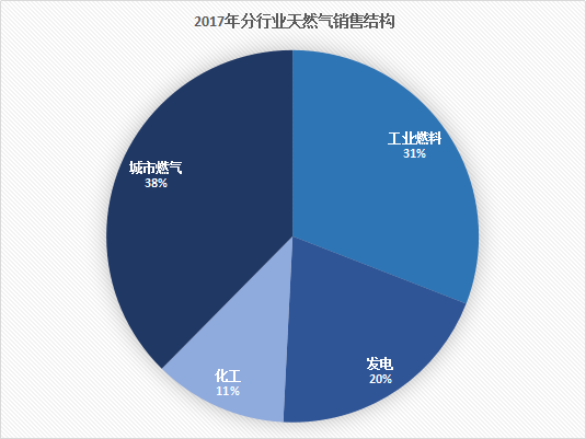 从行业来看,2017年工业和发电行业领涨天然气消费量增速。《报告》显示,去年,城市燃气用气量885亿立方米,同比增长14.2%;工业用气727亿立方米,同比增长20.2%;发电用气467亿立方米,同比增长22.9%;化工用气273亿立方米,同比增长9.2%。