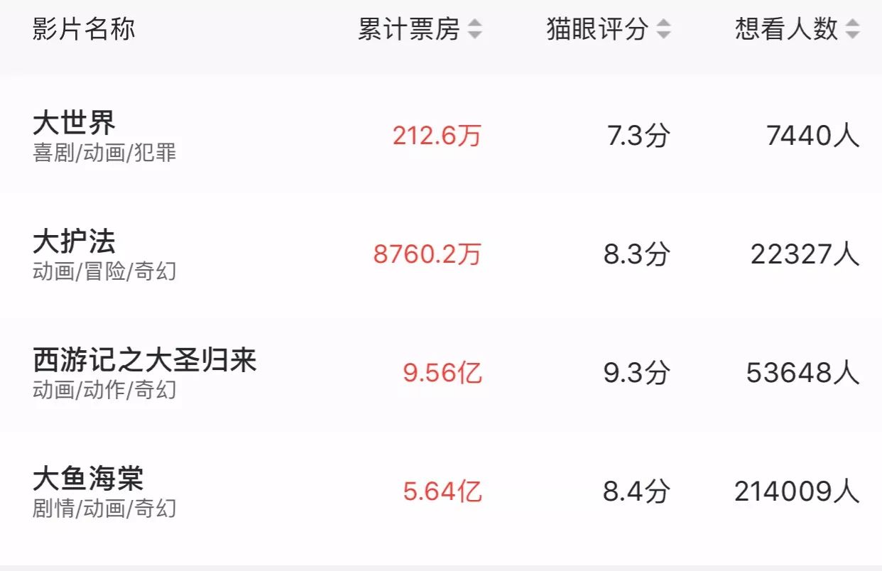 《大护法》的市场表现证明了小众动画虽然称不上电影市场的主角,但仍然能够站着挣钱。合格的制作和“不思凡”强烈个人风格的融合能让《大护法》在主流市场站稳脚跟,而《大世界》这类有一定制作短板和高观影门槛的作品从来都不是票房宠儿。