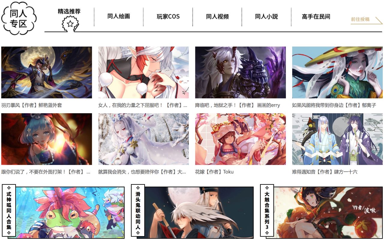 当然,在官方的支持下,由众多核心粉丝所创造出来的同人文化,对《阴阳师》的世界观构建也是功不可没。