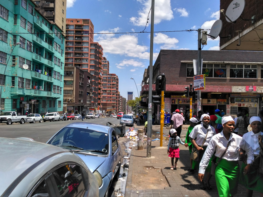 约翰内斯堡CBD,摩登的天际线下有一种没落的气息。公园车站(Park Station)一带喧嚣的批发街市和路边摊有点像广州一德路、武汉汉正街,只是远没有那么繁忙。希尔布罗这个曾经摇滚、同性恋酒吧星罗棋布的高档白人公寓区,则被来自周边国家的黑人新移民占据。CBD如今只是个地名,真正的中央商务区和白人中产社区,早已外迁到了北郊的桑顿、兰德堡和罗斯班克等地。