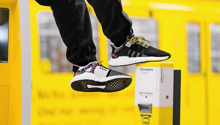 这款限量版运动鞋名为EQT-Support93/Berlin,它的最大卖点在于鞋舌处缝有定制版柏林公交系统年票,穿上便可以在2018年内免费乘坐柏林中心区域的地铁、巴士和电车,等同于一张免费公交卡。