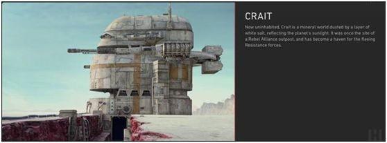星球大战的官网解释说:这个星球叫做Crait,它是一个撒了一层白色盐的矿物世界,它曾经是叛军联盟的前哨基地,后来成为逃离抵抗力量的避难所。