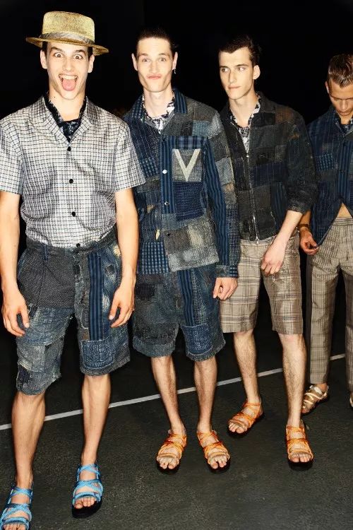 Kim Jones 是个日潮迷弟,入驻 LV 后的第一次与街牌合作,就交给了小众牛仔日牌 Kapital,一个一直以美式复古文化和民族风格自居的品牌。Louis Vuitton 2013 春夏系列新品发布会上,模特儿们都穿起了富含日本 BORO 风格的服饰,充满街头摇滚的 “Grunge” 味。