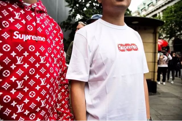 2017 巴黎男装周上 “Friends and Heros” 为主题的 Louis Vuitton × Supreme 系列制造了 “恐怖难见”的话题效应:从一开始 Supreme 粉丝上传的那件山寨 Louis Vuitton 针织衫开始,到 Box Logo Tee 炒价至 15000+ 人民币还有钱买不到,双方的这次合作可以说是彻底改变了 Supreme 在人们心中的印象,也改变了人们对老牌皮具品牌 LV 的看法。