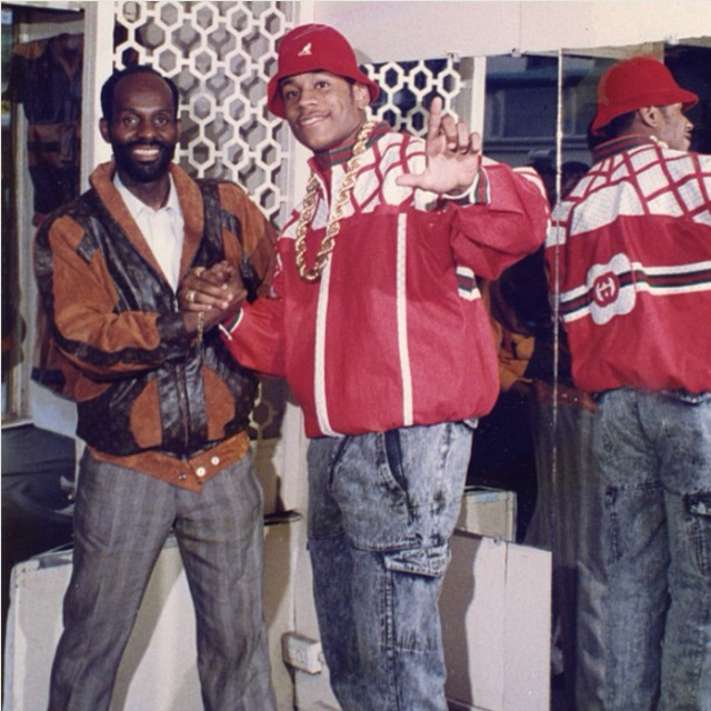 右为身着 Dapper Dan 定制双G logo 的 LL Cool J