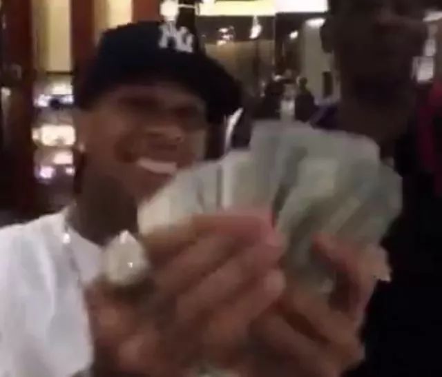 即使深陷债务危机,Tyga 也不忘拿着大把钞票在 Gucci 店里买买买。