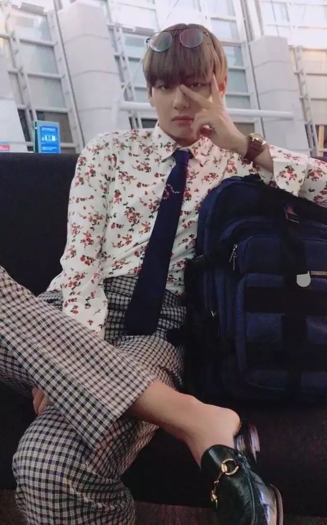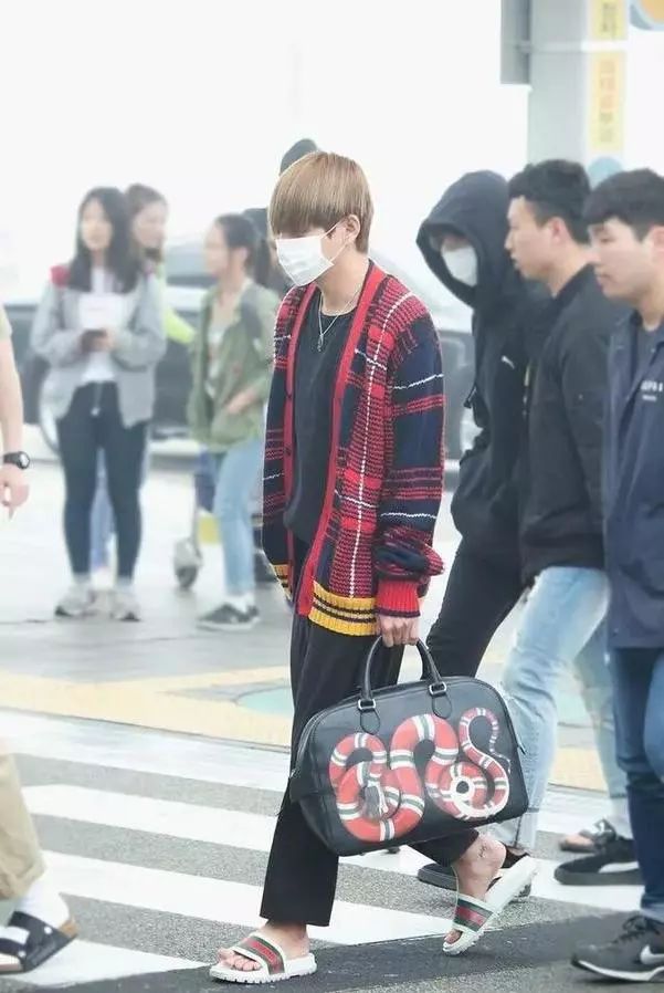 接下来的这位 rapper,可以说是 Gucci 深度中毒患者了,来自防弹少年团的金泰亨,我严重怀疑他买下了 Gucci 所有单品。。。