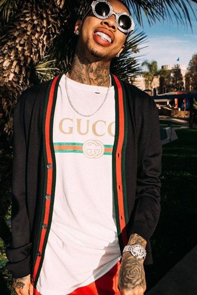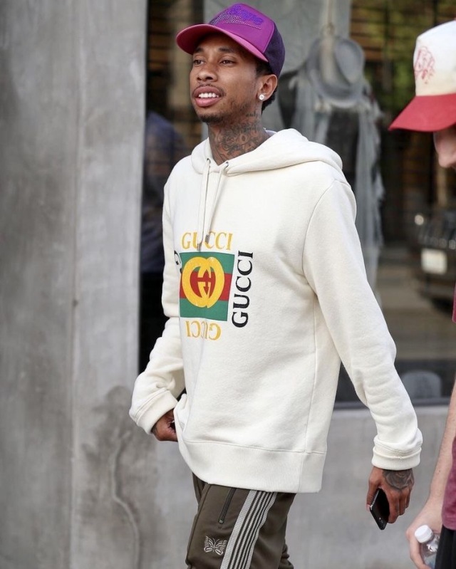 还有 Tyga,绝对是嘻哈界的Gucci 头号迷弟了,和金小小妹出街行头约会、个人日常,全都是 Gucci。