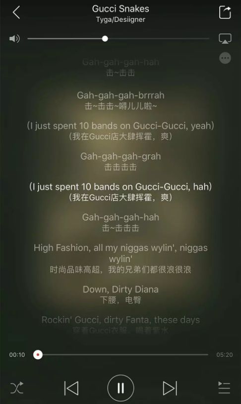 Tyga 还和 Desiigner 一起出了首歌,就叫《Gucci Snakes》,歌词也是自己在 Gucci 店里自嗨。