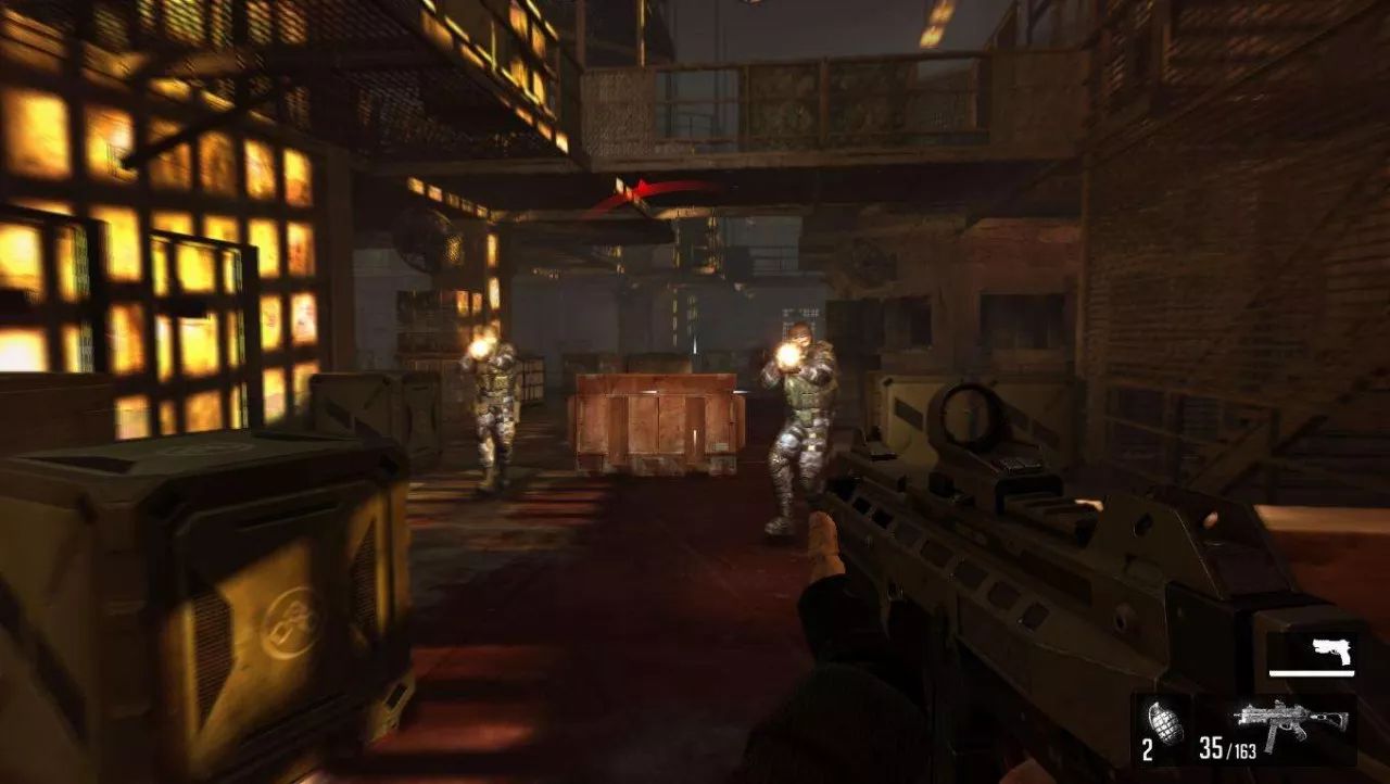 然而本作主打的并不完全是恐怖氛围,游戏的爽快度,玩法,射击手感,也是相当出色的。当玩家们操控PointMan进行游戏时,玩家可以使用常见的武器类型:小刀、冲锋枪、突击步枪、手枪等等甚至于机甲这种逆天的操控设备。其次再来谈谈它的射击感:不是很好,但却有一定爽快感。恰到好处的后坐力使得游戏在畅玩时也加入了一定的难度,但也同时加深了可玩性,敌人的难度也属于适中,除了杂兵,还拥有BOSS战。在玩家们进入激战时,可以躲入掩体中来避开火力。