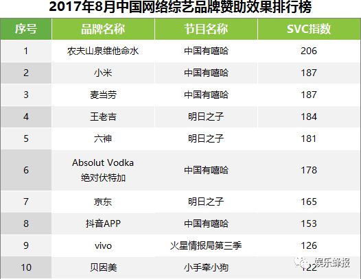 《中国有嘻哈》《明日之子》连续两月蝉联网综品牌赞助效果榜单。
