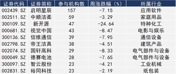 从调研情况来看,事实上,本周十大热门调研企业股价均整体下跌。启明星辰为本周获机构调研数量最高的上市公司,但该公司股价周跌幅为7.15%。而新开源本周股价更是下跌达24.64%,但这家公司1月17日的现场调研会议却吸引了47家机构参与。