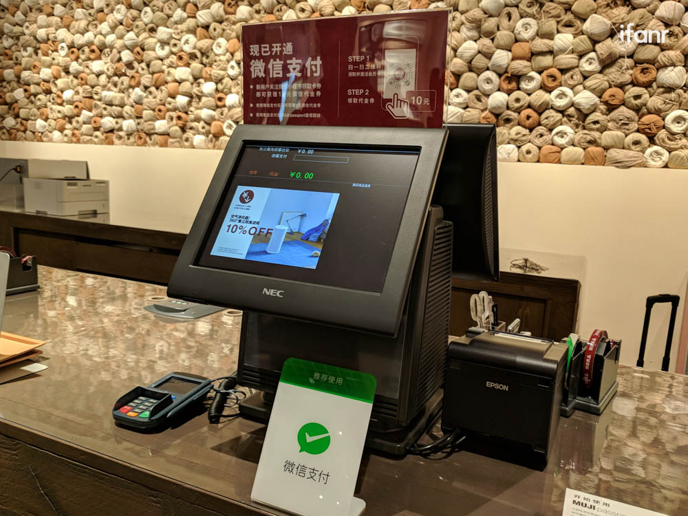 其实在这一天,无印良品还有一个低调但普通消费者更容易感知到的变化,那就是国内的门店全面接入了微信支付,在此之前,这里一直都是支付宝的地盘。无论是在酒店前台、商店收银台亦或是餐厅点餐台,“微信支付”的招牌和优惠宣传海报都在不断提醒消费者:微信支付和 MUJI 更配哦。