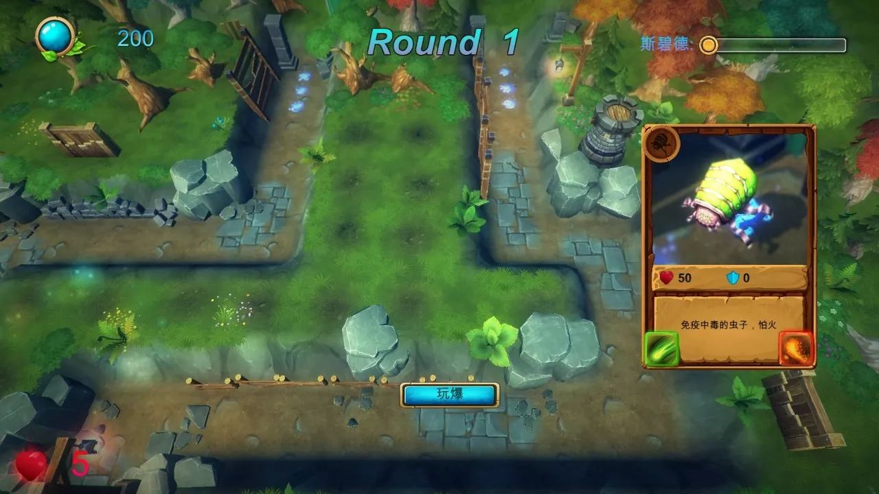 游戏的模式也是简单直白,直接开始塔防,前面的关卡较为简单,而且每关有5滴血,也就是最高你能漏掉4个怪,就能通过关卡。开始也会有教程(非常简单明了)