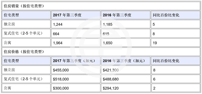 图四:2017年蒙特利尔各类型房屋空置率及租金