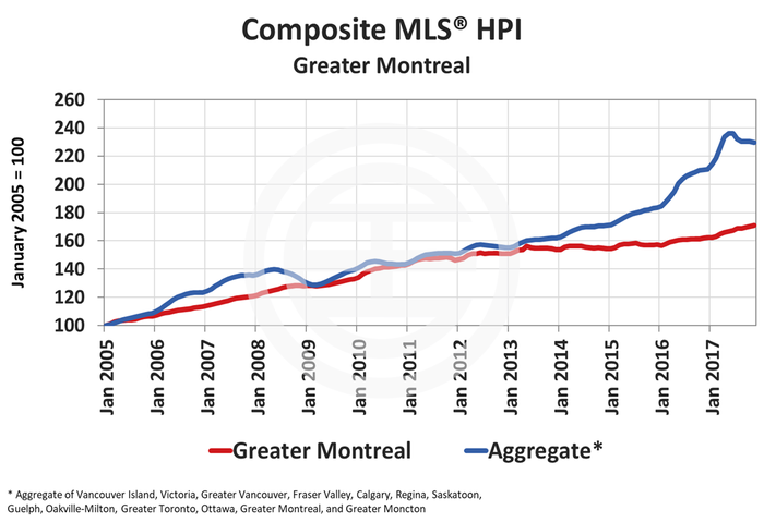 图一:蒙特利尔MLS®综合房屋价格指数(2005年1月—2017年12月)